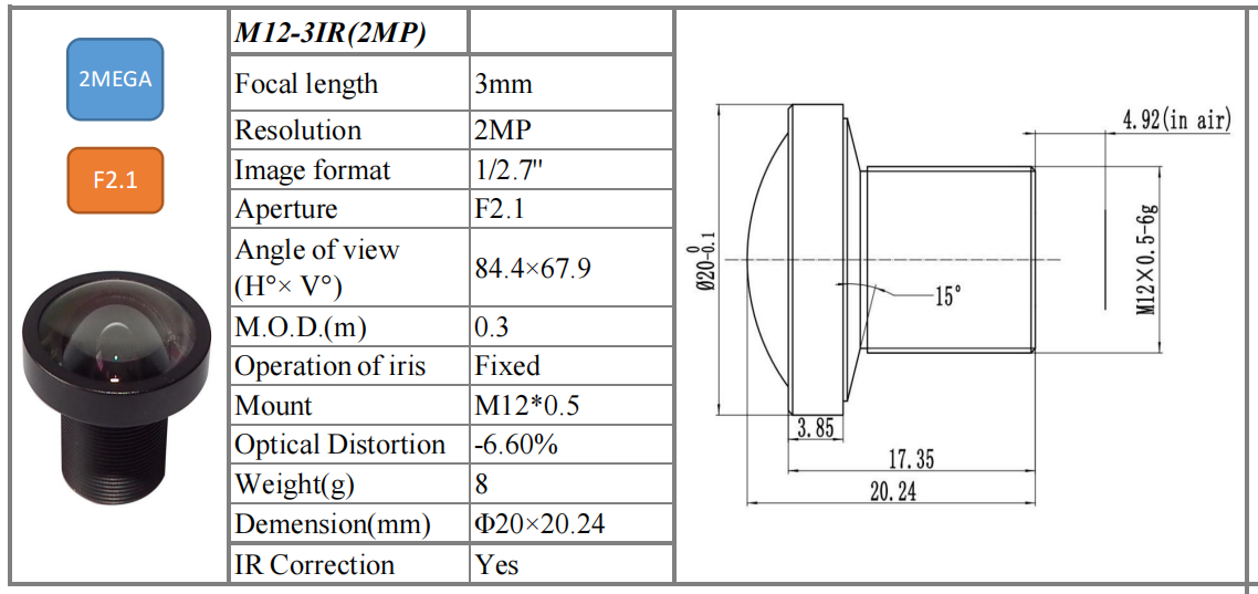 Focal Length:3mm