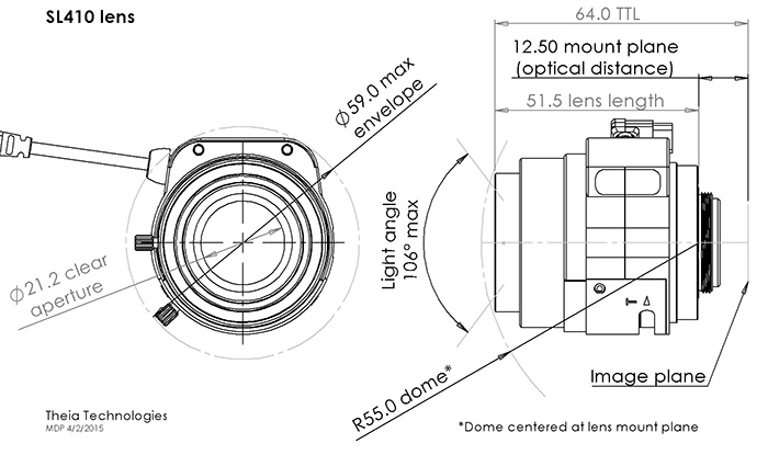 Theia's standard focal range SL410 (CS mount) and ML410 (C mount) lens is designed for true 4K resolution. With varifocal length from 4-10mm and superior imaging performance, the SL410 and ML410 can be used with image sensors from 1/2.3" up to 1/1.7".