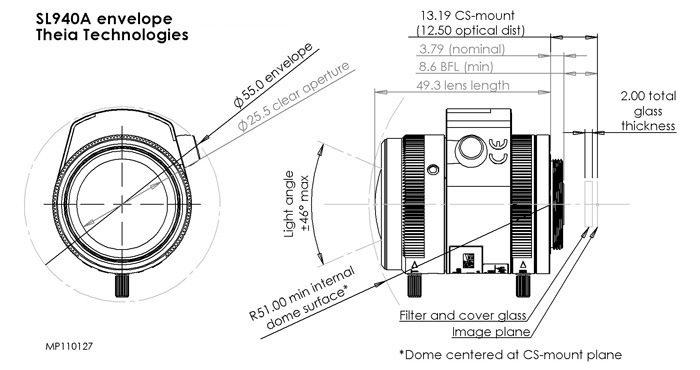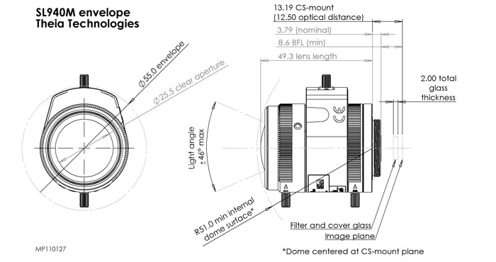 Similar to Theia's other lenses, the SL940 is a high quality lens designed to allow the installer to take full advantage of the high resolution of HD and multi megapixel cameras. The lens can be used on cameras up to five megapixel resolution giving a crisp image from edge to edge.