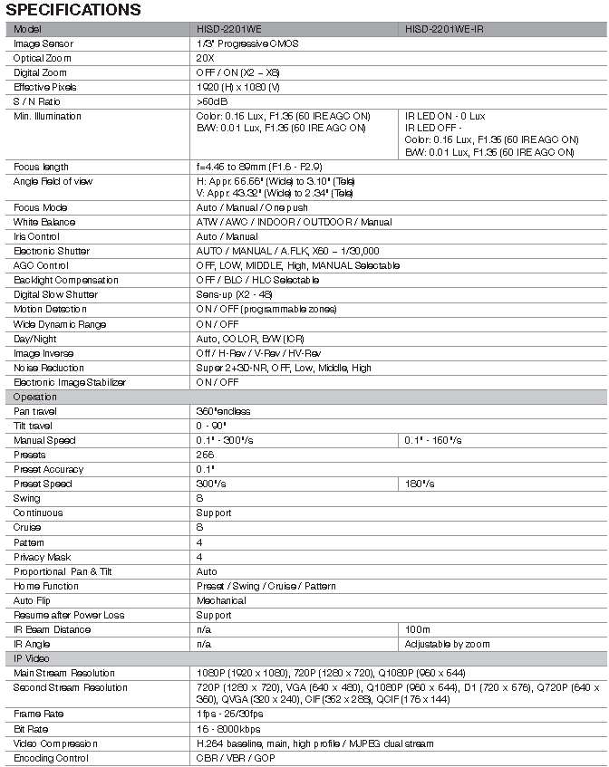 (HISD-2201WE), these speed domes are ideal for advanced surveillance