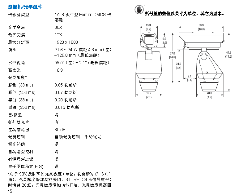 ● 200 萬(wàn)像素圖像,30 倍光學(xué)變焦,12 倍電子變焦,寬動(dòng)態(tài)范圍(WDR)攝像機(jī)
