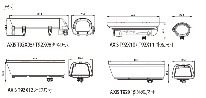 AXIS T92X 系列防護(hù)罩采用鋁合金外殼的全封閉設(shè)計(jì),包含AXIS T92X05, AXIS T92X06室內(nèi)防護(hù)罩 ,以及AXIS T92X10,AXIS T92X11,AXIST92X12,AXIS T92X15 室外防護(hù)罩。