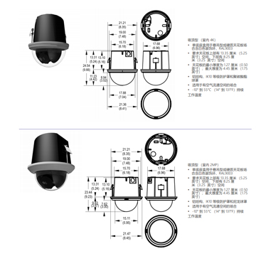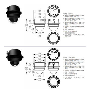 *室外吸頂型和室外懸吊型底盒一同使用室外下球罩。