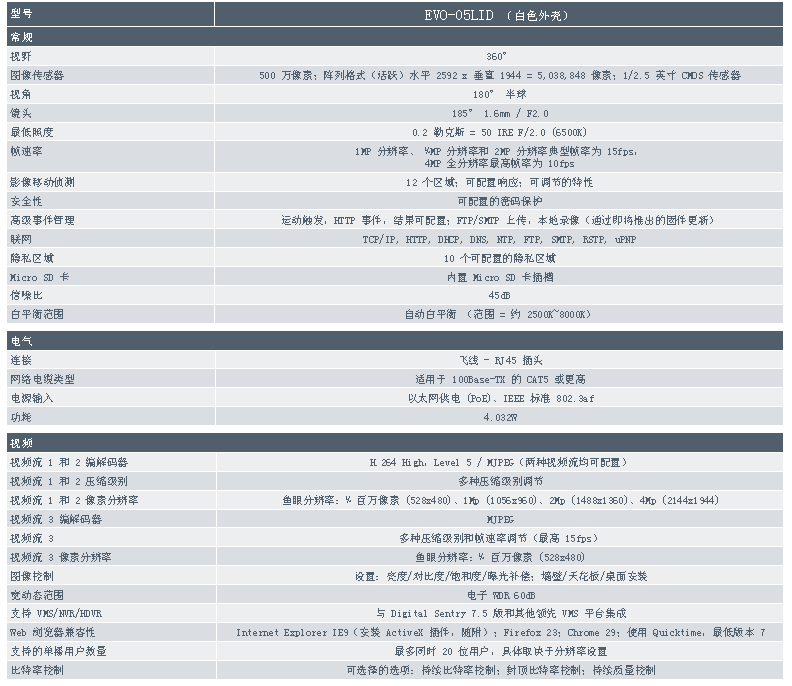 EVO-05LJD 黑色Pelco派爾高360全景攝像機(jī)