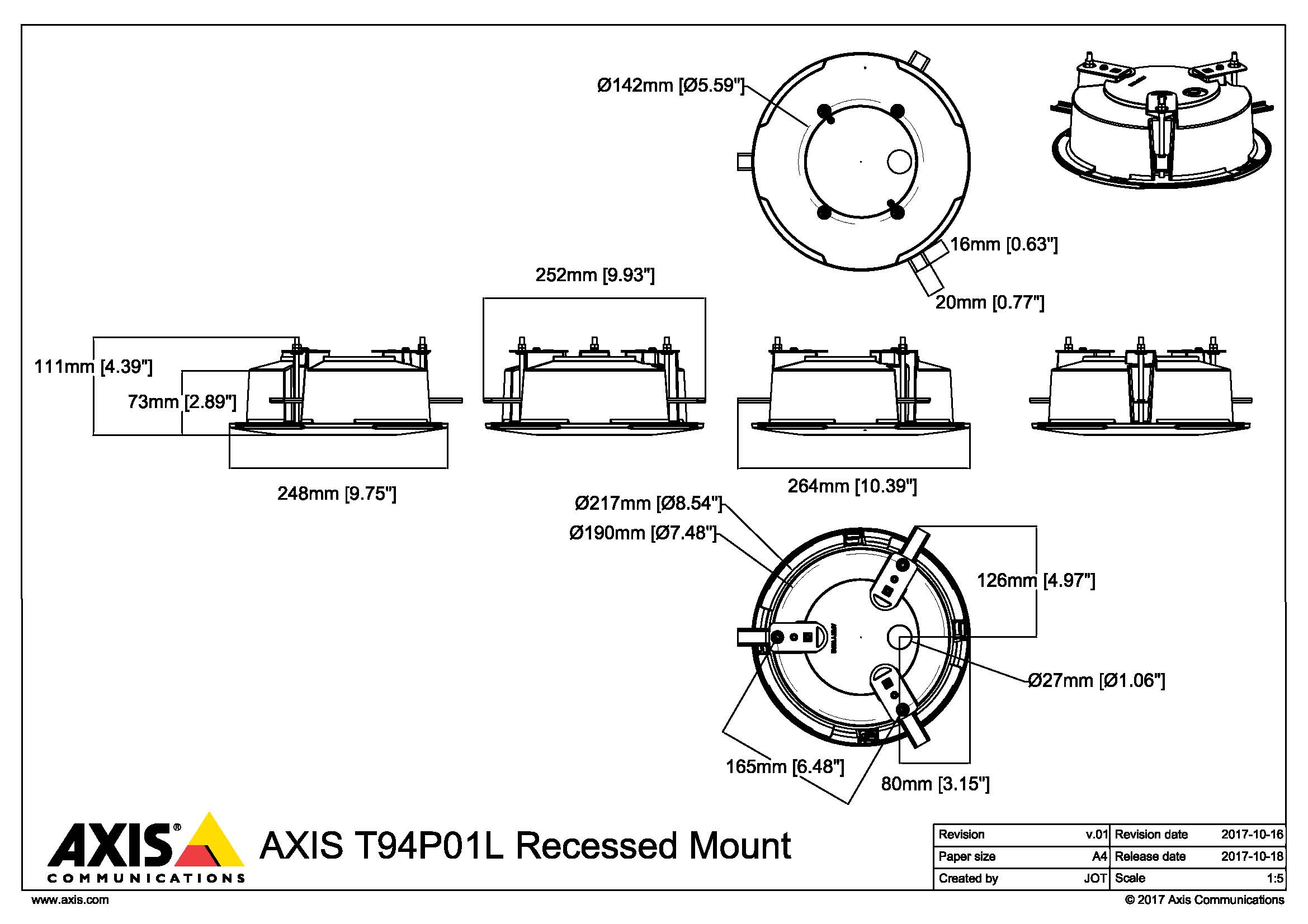 AXIS T94P01L Recessed Mount is compatible with AXIS M55 Series. The metal back box with a ?-inch hole for cable protection conduits makes the mount suitable for installations in plenum spaces.