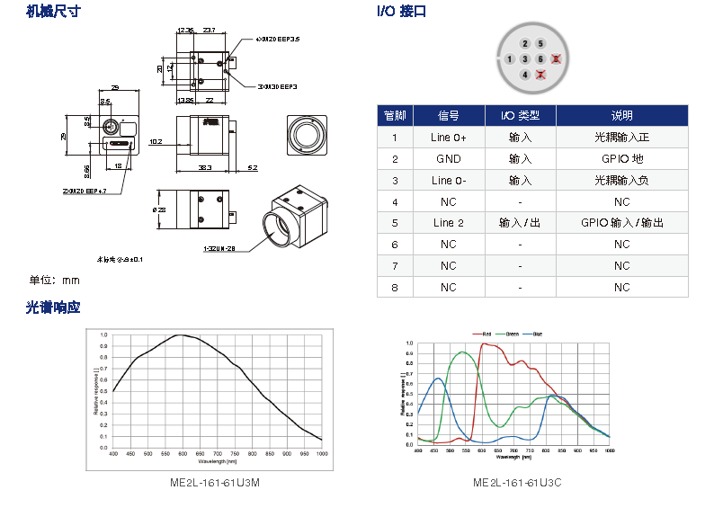 ME2L-161-61U3M/C 水星二代Lite 160萬(wàn)像素黑白工業(yè)相機(jī)