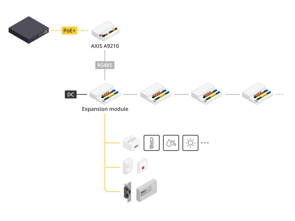 該 I/O 和繼電器模塊基于模塊化系統(tǒng)架構(gòu),可讓您自定義 I/O 功能以滿足您的特定需求。此外,它還確保安裝成本效益高,無需昂貴的服務(wù)器。借助多點(diǎn)技術(shù),一臺(tái) AXIS A9210 設(shè)備可支持多達(dá) 16 個(gè)擴(kuò)展模塊,并且使您能夠僅使用一根 PoE 電纜連接多達(dá) 128 個(gè) I/O 和 64 個(gè)繼電器。這種可擴(kuò)展的設(shè)備提供靈活的安裝,可以安裝在任何地方。例如,在墻壁上使用壁掛式安裝或在戶外使用機(jī)柜。而且,通過 DIN 導(dǎo)軌,它可以垂直、水平安裝或刀片式安裝。
