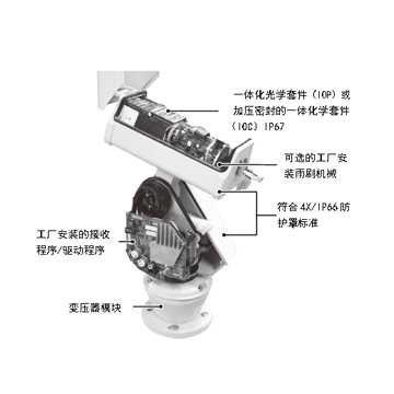 接收器,云臺(tái),防護(hù)罩,一體化光學(xué)組合器件(IOP)或加 壓密封一體化光學(xué)套件(IOC),NTSC/PAL